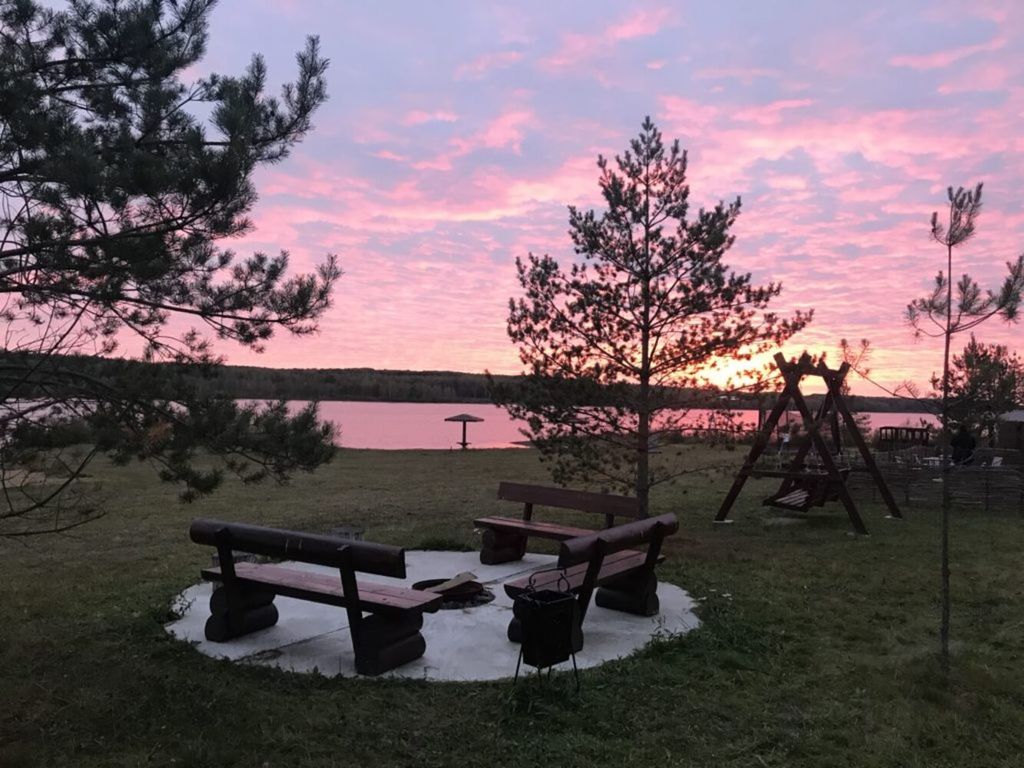 На территории – песчаный пляж, волейбольная и детская площадки, кемпинг, беседки.